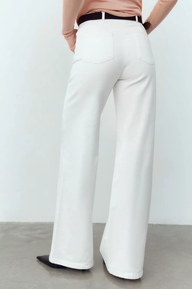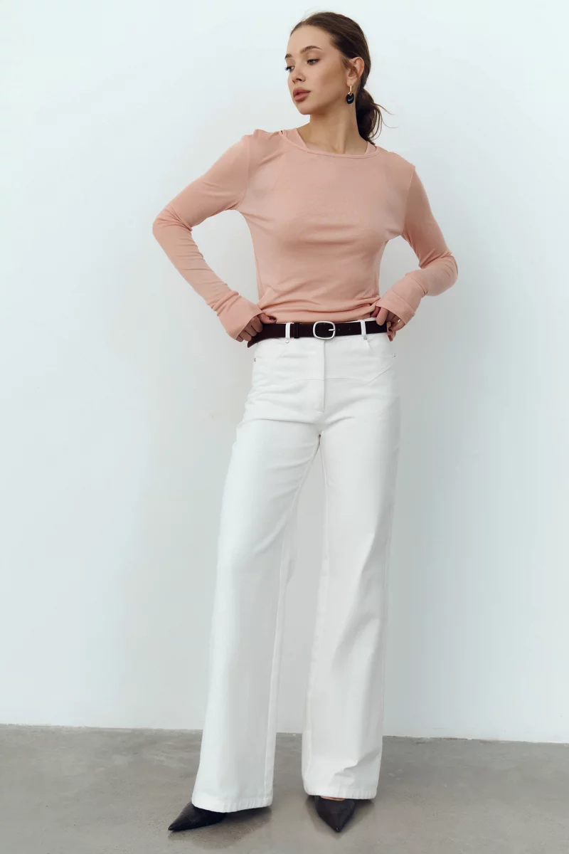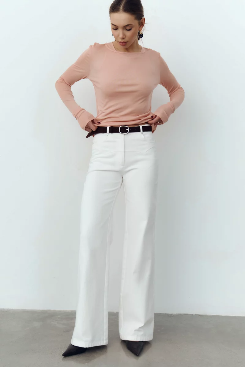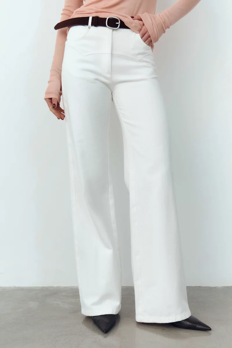 Молочные джинсы прямого кроя с высокой посадкой