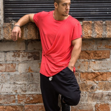 Спортивная мужская футболка свободного кроя, со стильной поперечной планкой на поясе и коротким рукавом с отворотом. Коллекцию представил Вадим Олейник - Чемпион Мира 2013 по street-workout and calisthenics.