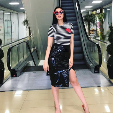 Реально маломерка взяла размер Л на параметры 88.70 и то в груди немного тесно, а если в общем то понравилась, контрастная такая, яркая, для темноволосых очень красиво. Ткань синтетика но приятная на ощупь и к телу, сердечко пришито не криво, как...Детальнее