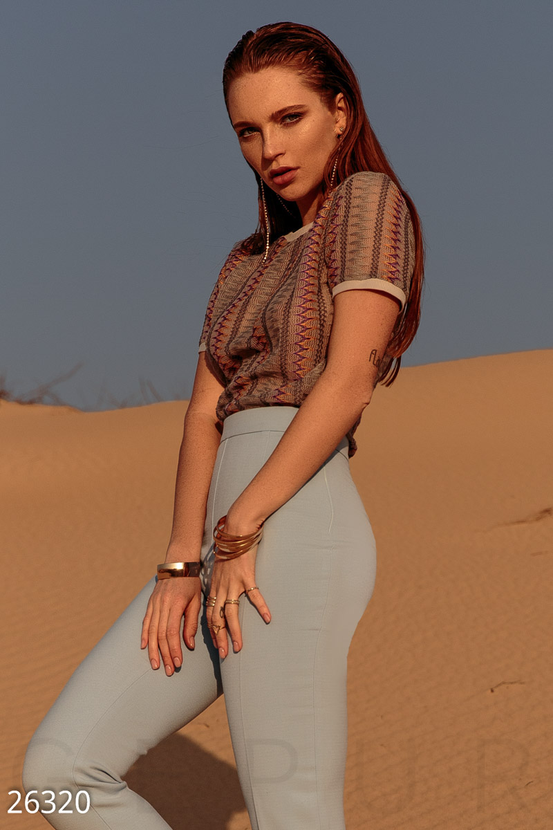 довольно проськая и абчолютно прозрачная.правда когда надеваешь,это так сильно в глаза не бросается. ткань будто вязаный свитер)) цвет серый, я думала будет более бежевый. размер Л хорошо сел на 90/74/100