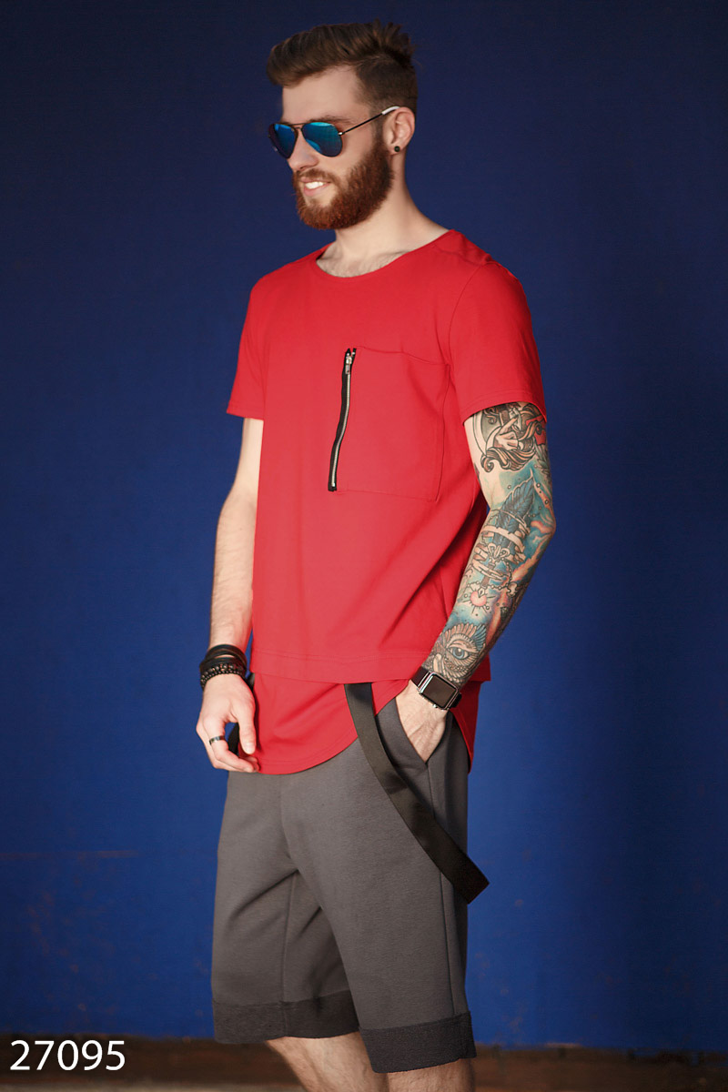 Яркая мужская футболка GPR с большим нагрудным карманом, декоративной молнией, удлиненной спинкой и закругленным подолом со съемной репсовой лентой.