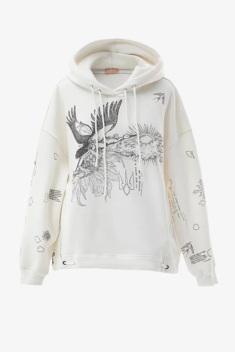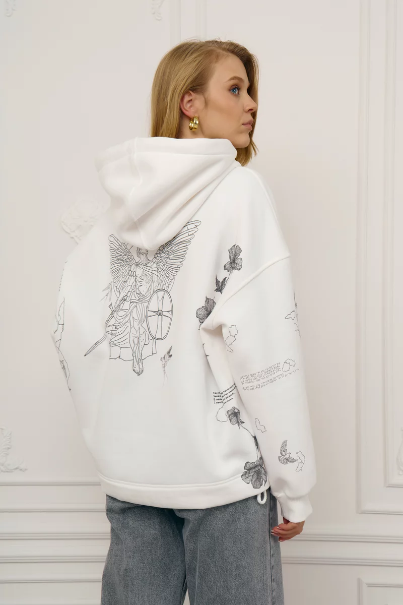 Третя річ, яку замовила із цієї колекції. Худі 43243 крута якість, добре тримає тепло, не кашлатиться. Принт якісний, не стирається, залишається яскравим. Розмір брала xs-s, модель відповідає розміру.
