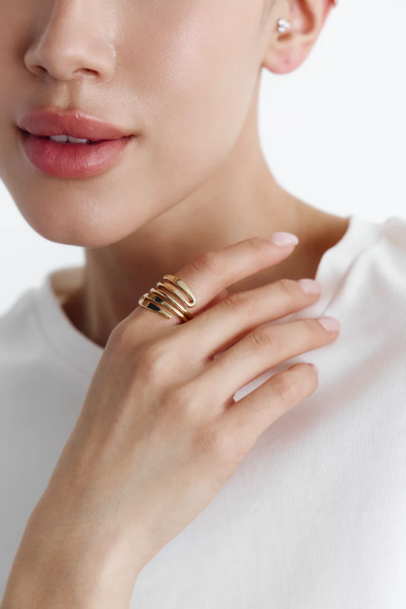 Золотистое кольцо-змейка