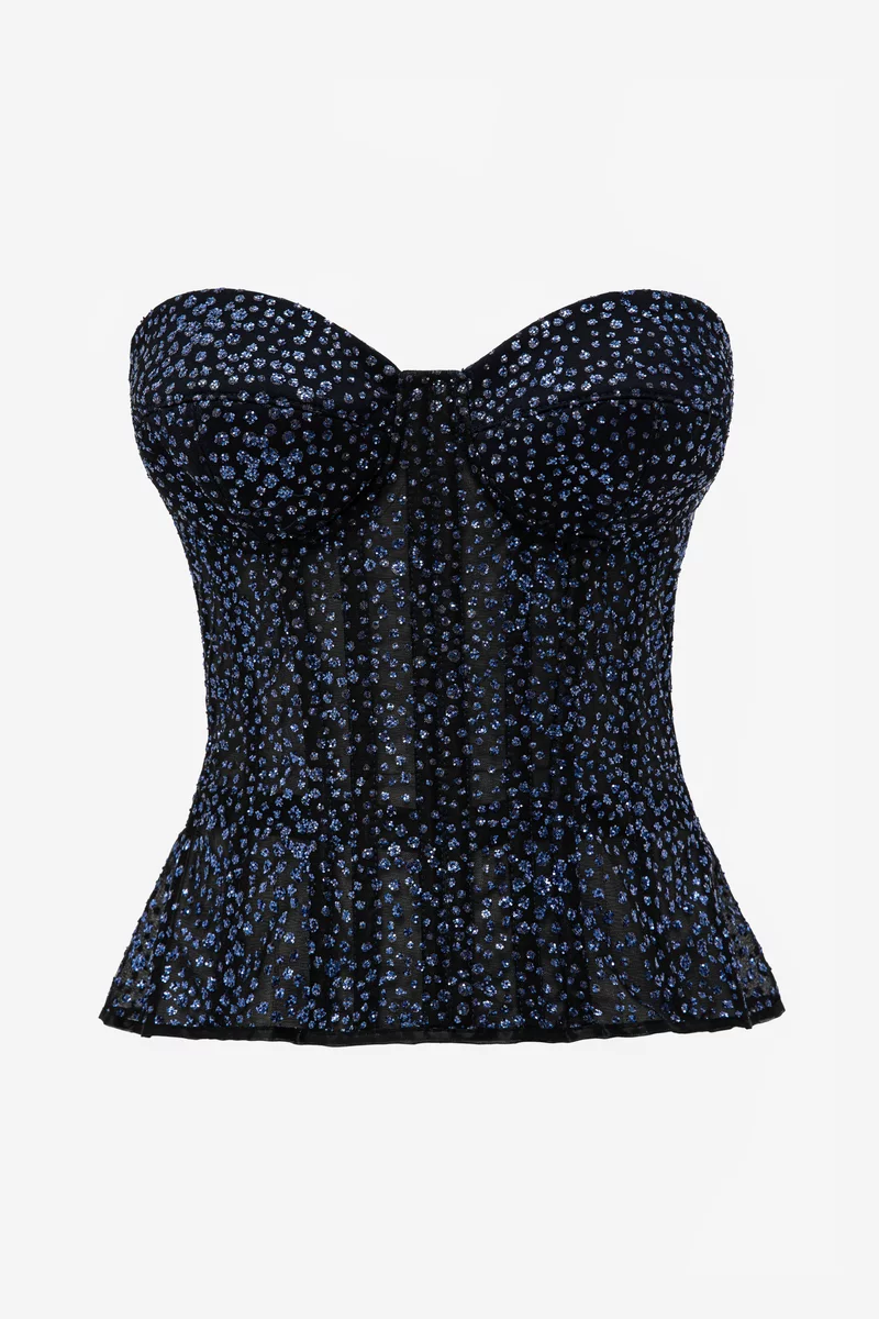 Темно-синий корсет-бюстье на косточках