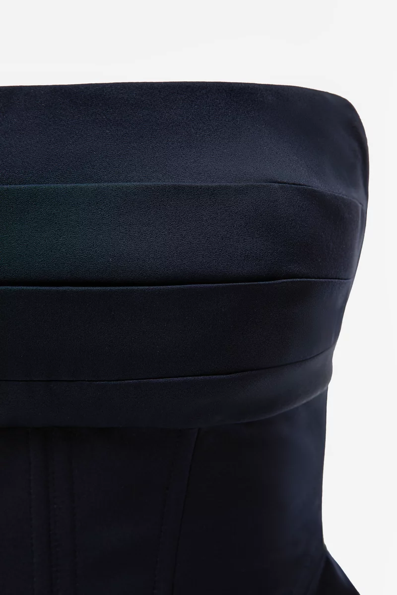 Топ-корсет с баской из плотного сатина. Модель на косточках. Спинка корсета стилизована шнуровкой, позволяющей регулировать объем