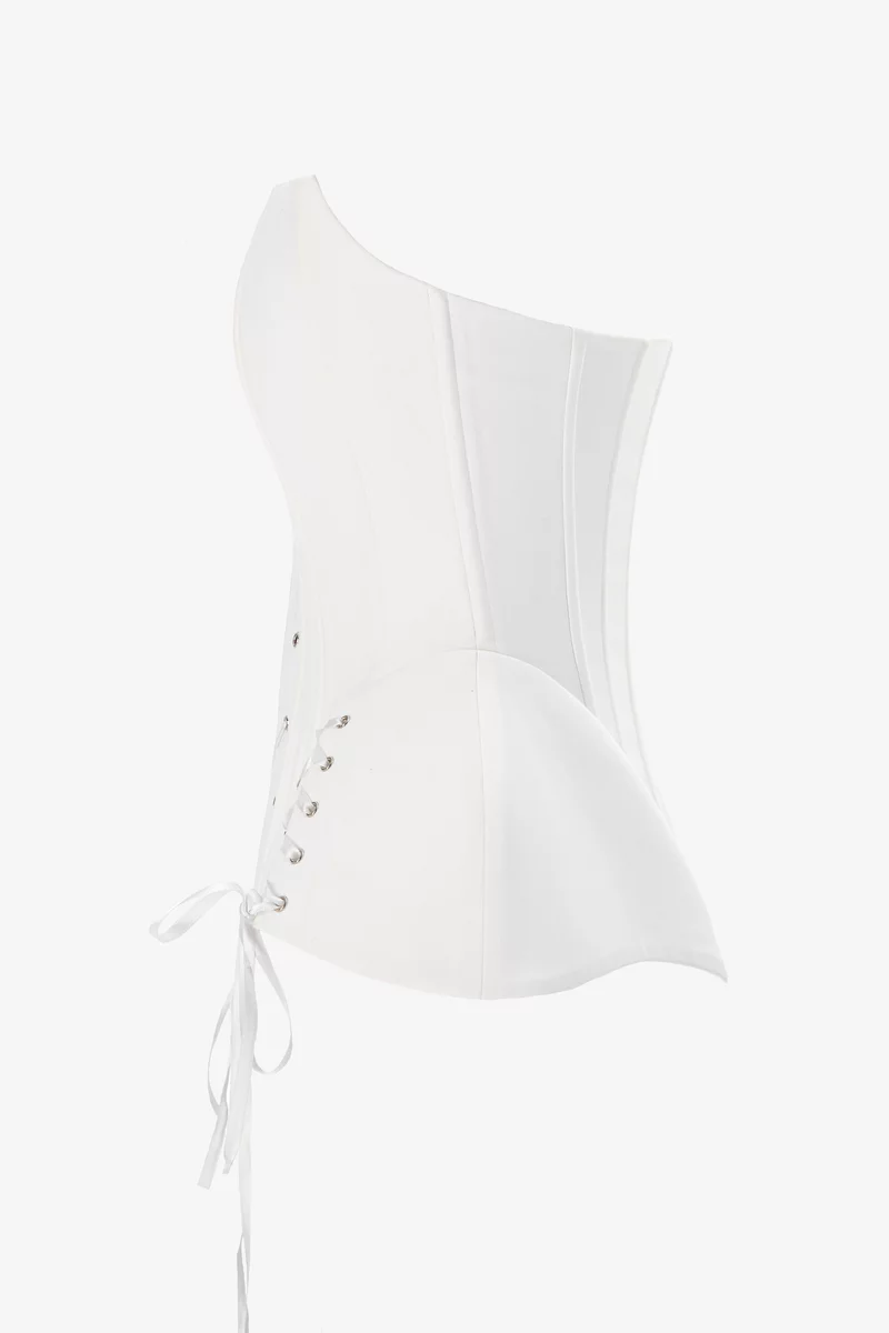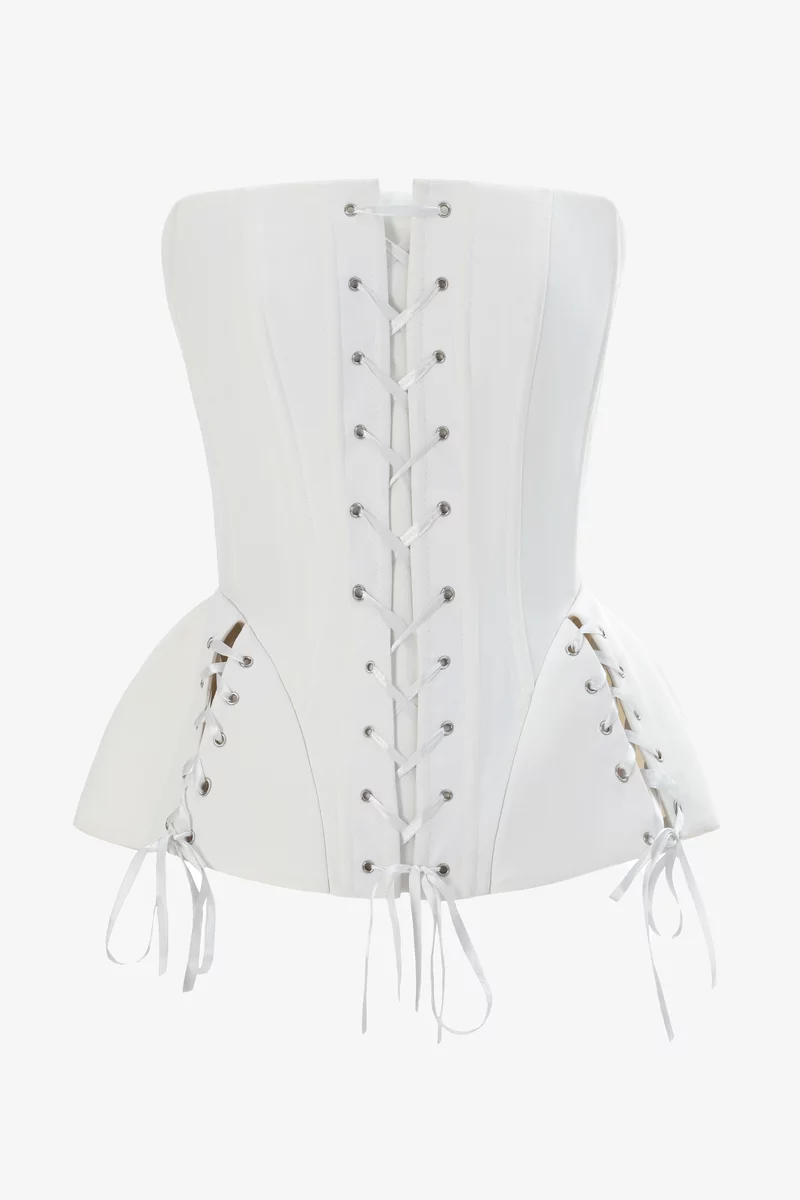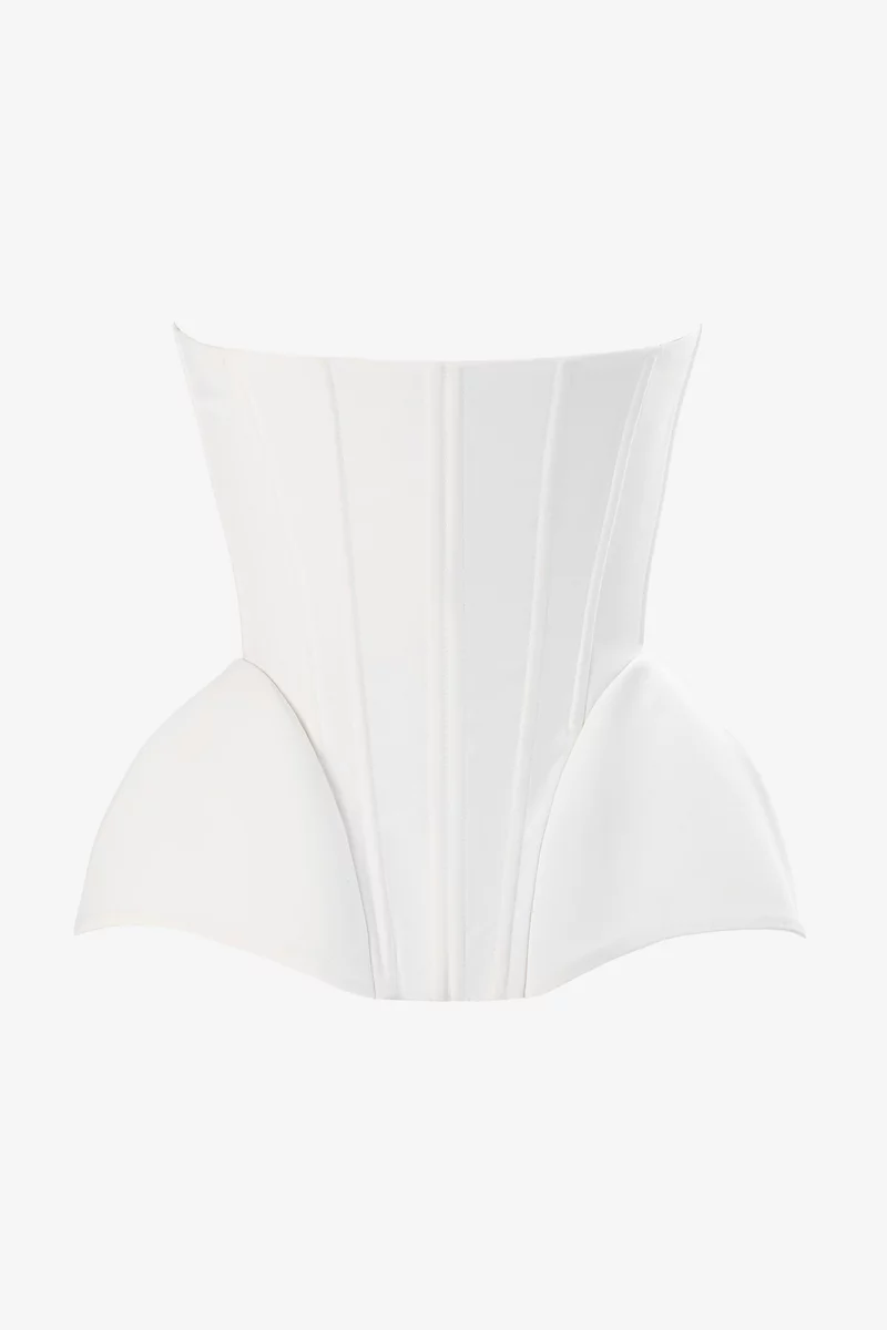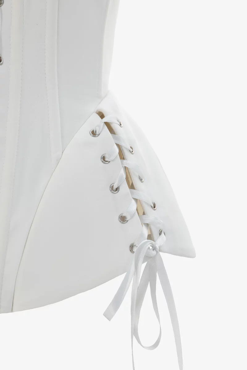 Сатиновый корсет, воплощающий грацию, элегантность и неповторимый стиль королевы. На косточках, эффектно моделирующих силуэт и подчеркивающих талию. Здесь чувствуется любовь к красивым деталям – шнуровка спереди, позволяющая регулировать объем, баска на завязках. На подкладке