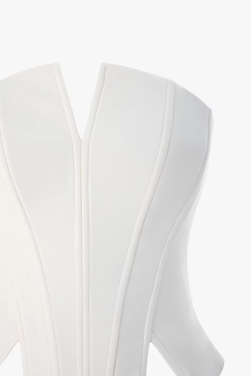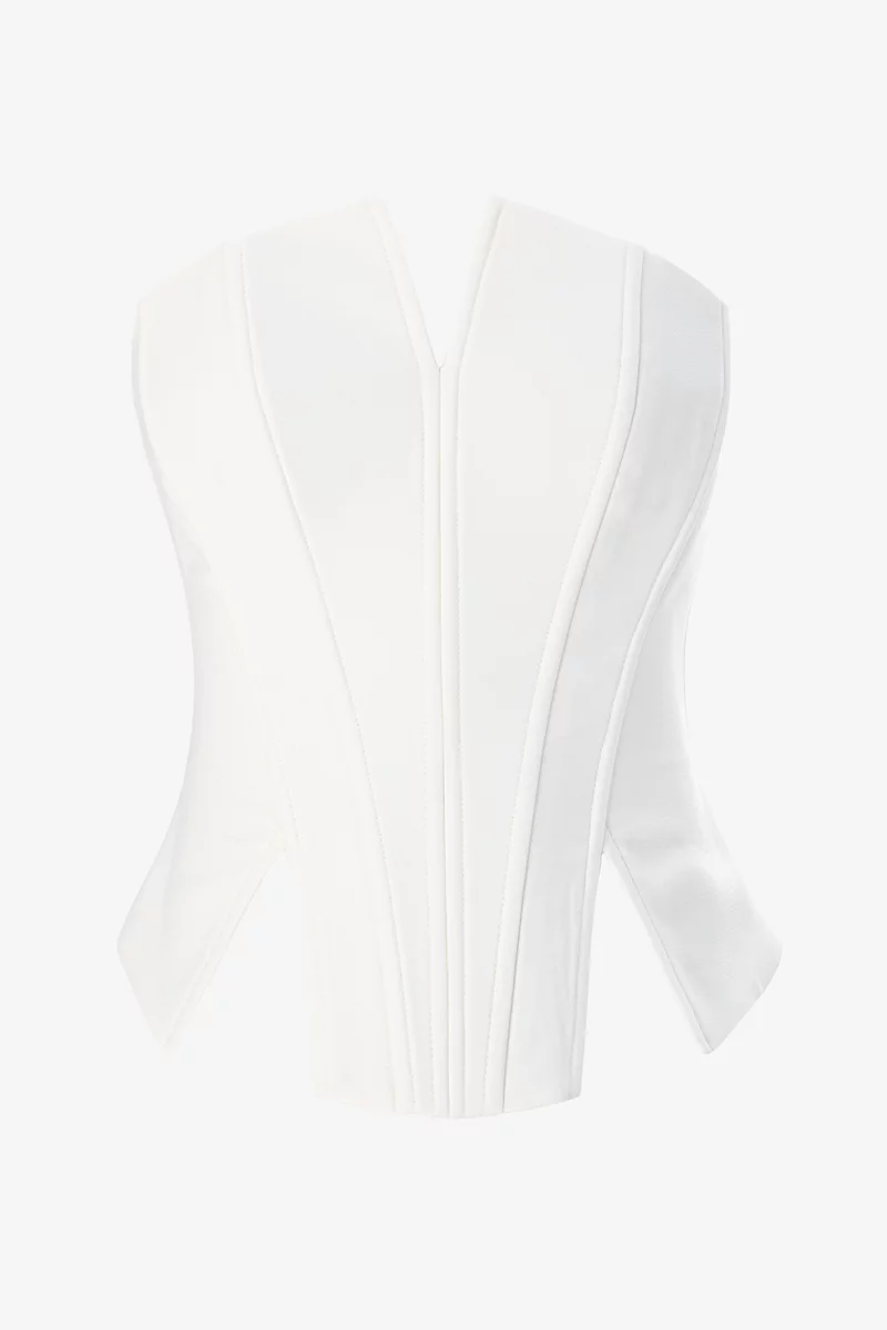 Молочный корсет с разрезами из костюмной ткани