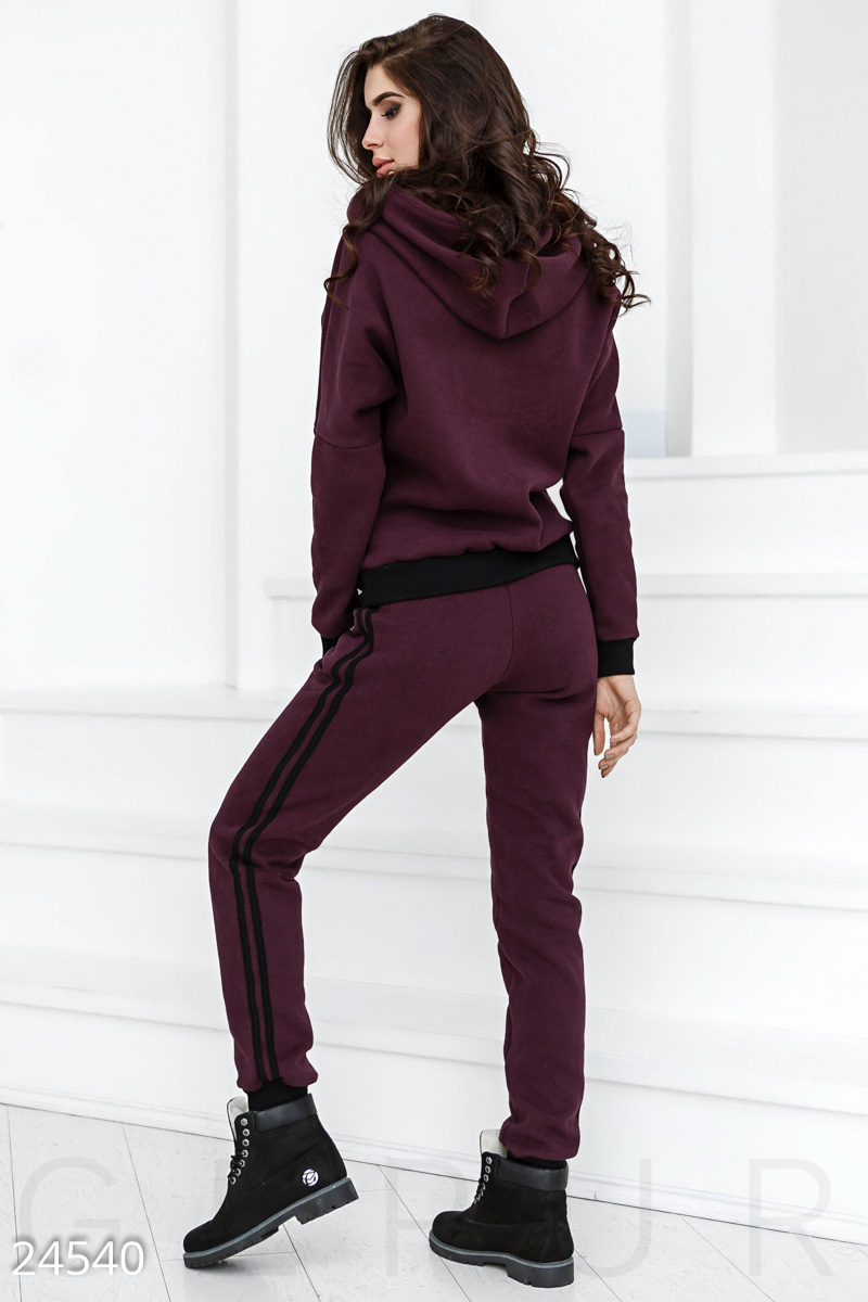 Капюшон у костюма очень красиво сделан,вообще верх костюма очень удачен! Я на свой 42 размер брала С. Большеват, в ОБ особенно. Но это все не критично! На рост 170 штаны- хорошо. Изнутри теплый начёс.
