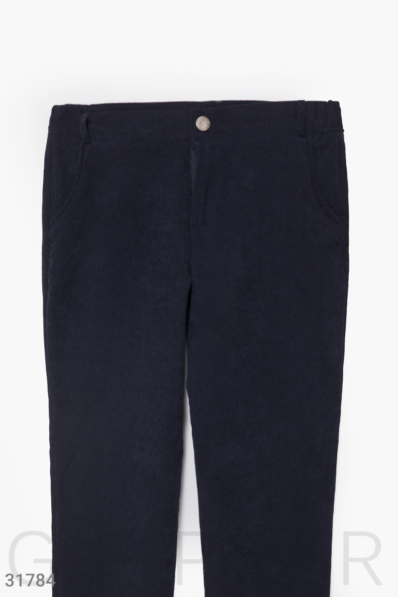 Трендовый костюм-двойка: однобортный пиджак на подкладе, металлической кнопке, с классическим отложным воротником, лацканами, длинным рукавом, двумя прорезными карманами с клапаном и одним нагрудным-обманкой, брюки прямого кроя с двумя прорезными карманами по бокам.