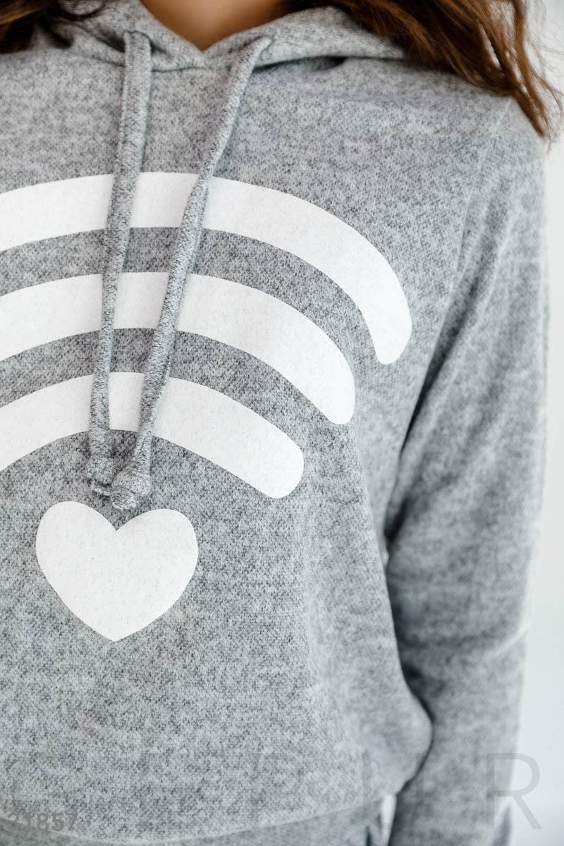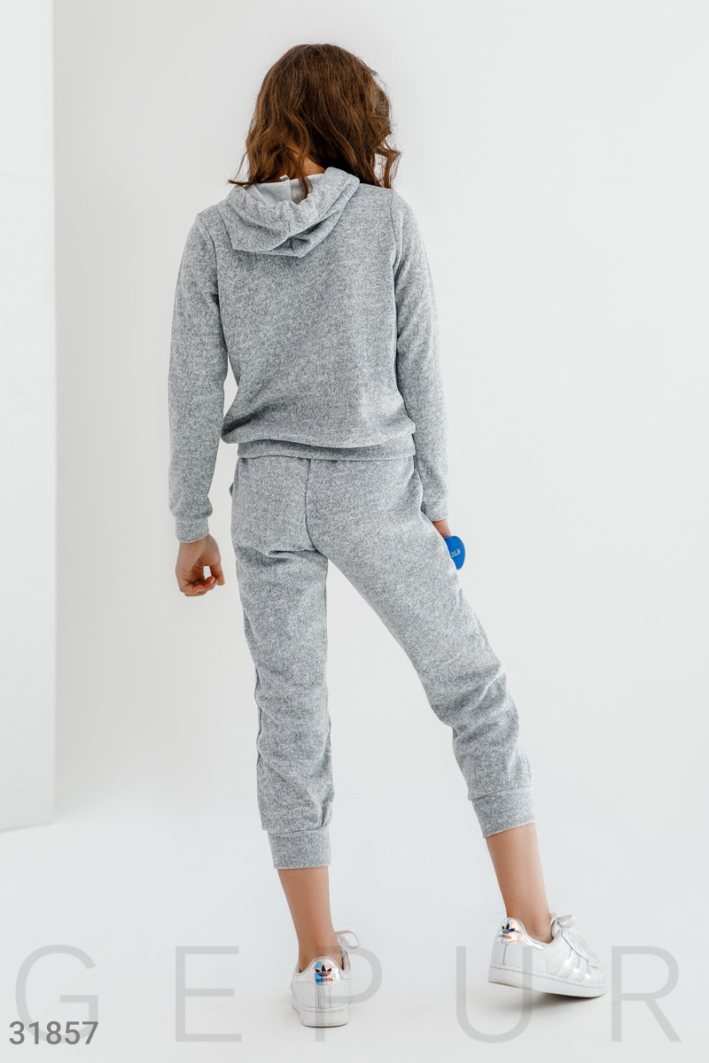 Актуальный трикотажный костюм: свитшот с длинным рукавом, круглым вырезом с капюшоном на завязках, спереди контрастный накат, брюки-джоггеры средней посадки на эластичном поясе, завязками и двумя прорезными карманами. Акционное предложение распространяется только на розничных клиентов.