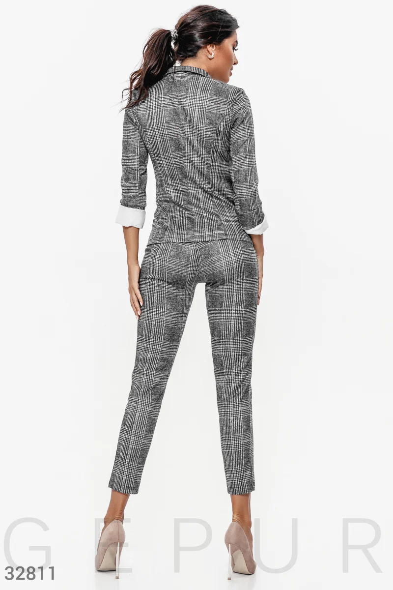 Костюм очень понравился!!! Костюм такой же как фото (пошив и внешний вид). Клетка немножко не совпадает, но это видно и на фото. Ткань мягкая, приятная и хорошо тянется. На параметры ОГ-98, ОТ-80, ОБ-107 брала L, сел отлично - не в обтяг и не...Детальнее