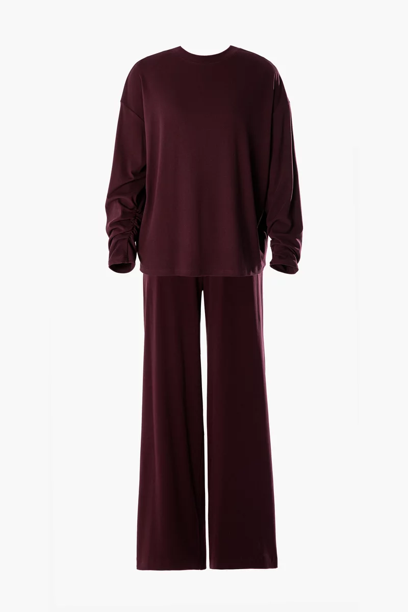 Комплект из приятного к телу трикотажа включает лонгслив оверсайз и брюки свободного прямого кроя. Брюки с высокой посадкой и поясом-резинкой. Благодаря своей универсальности, лонгслив и штаны можно носить как в комплекте, так и отдельно