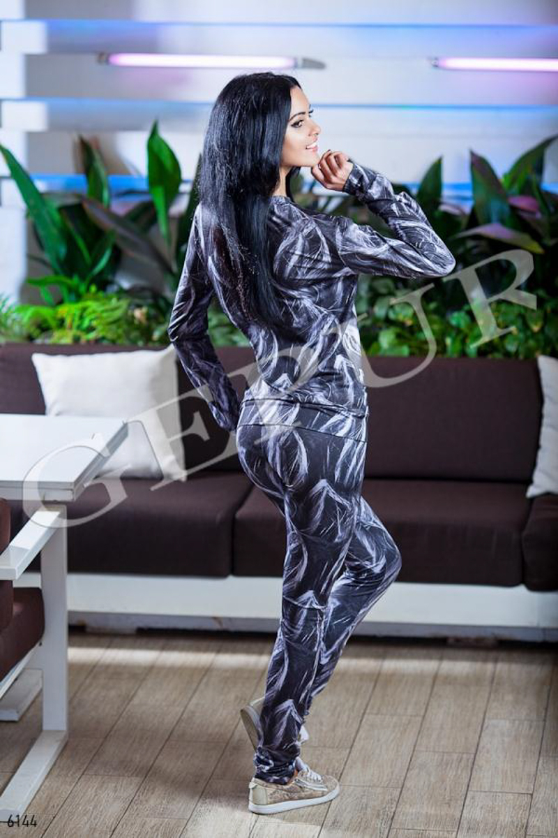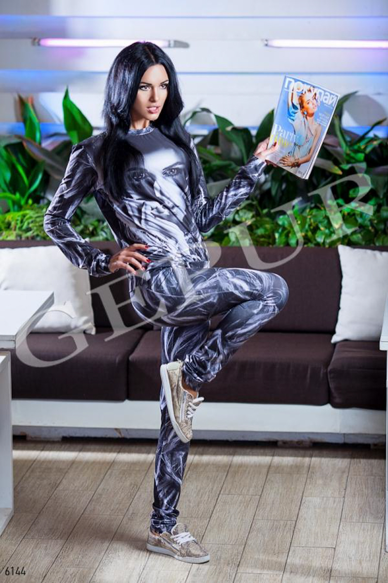Отличный костюм! Лосины длинные, на рост 176 см - до пятки. Расцветка смотрится очень оригинально, белье не просвечивает.