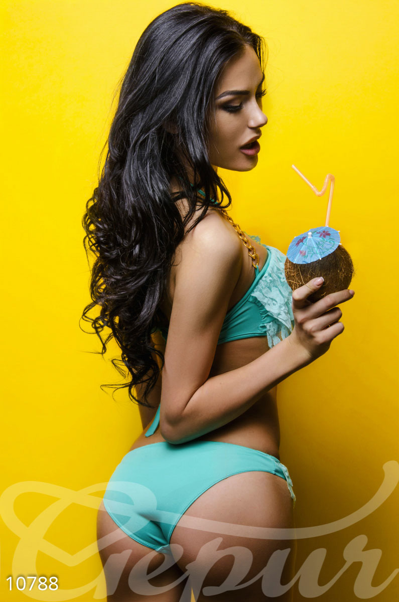 Очень эффектный купальник, на пляже незамеченной не останетесь!!! Оборочки очень нежные, цвет яркий, идет в размер, на параметры 86-65-87 подошел С очень хорошо, рекомендую!!!!!