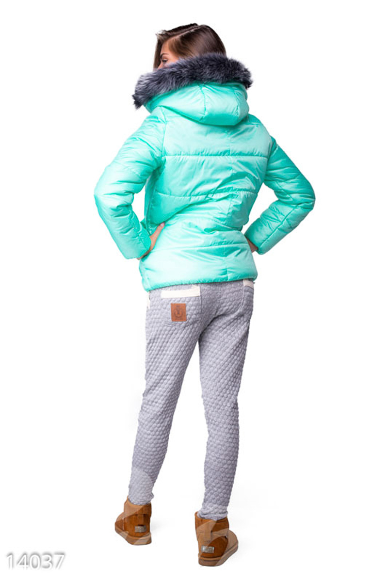 Куртка классная! Точь в точь как на фото, цвет темнее, но об этом предупредили, что с производства пришла бирюзовая, решено было брать, а не ждать. Легкая, теплая, свободная, уютная. Немного лезет мех, надеюсь весь не вылезет. на свой s заказала s,...Детальнее