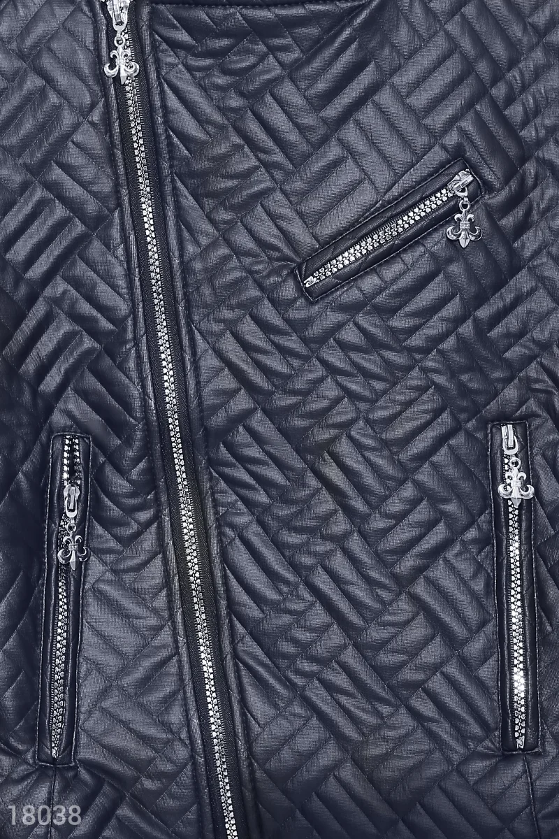 Облегающая байкерская куртка, выполненная из стеганой эко-кожи: короткий воротник-стойка, длинный рукав без манжет, два кармана на молнии и съемный пояс в петлях.