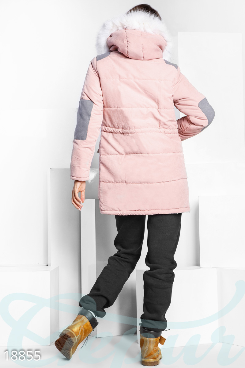 Парка хорошая,правда думала что теплее.Цвет не прям нежно розовый,а пудровой розы.Внутри регулируется шнурком.Немного большемерит, но для парки нормально немного свободно+внутри стягивается. Покупкой довольна).