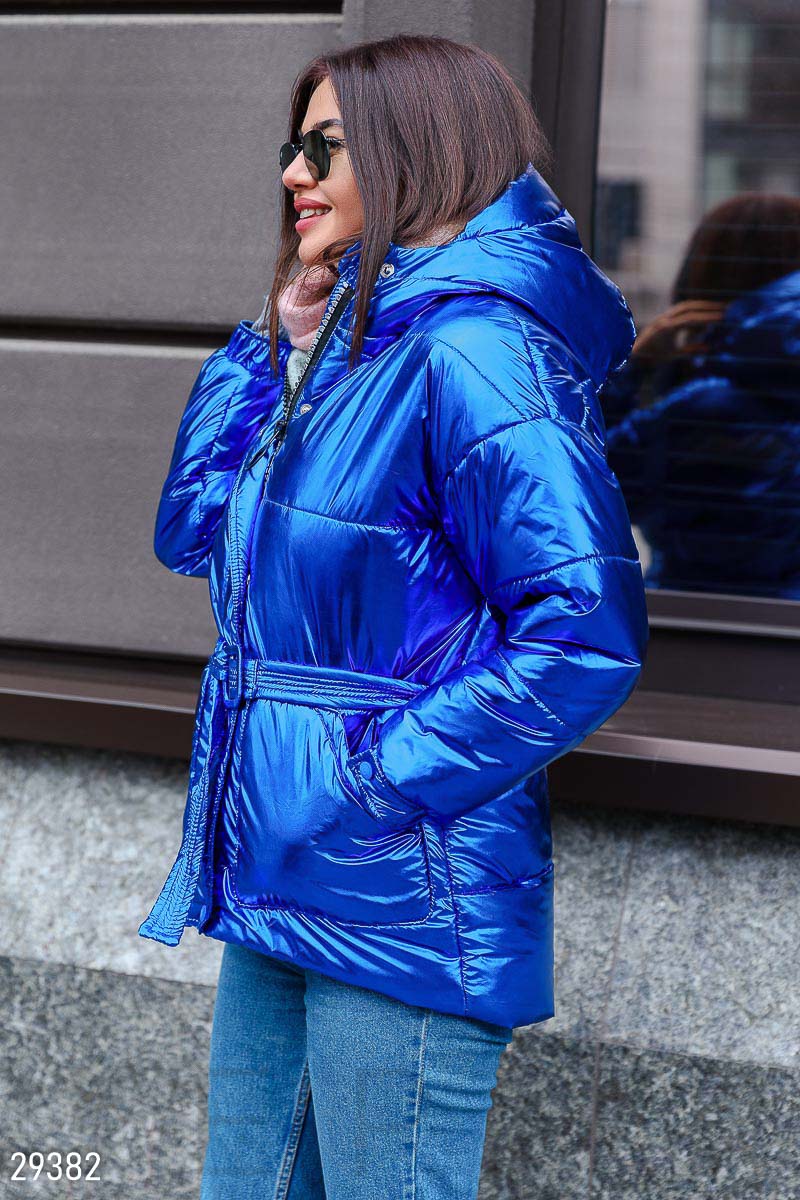 Трендовая стеганая куртка с капюшоном, двумя карманами по бокам, удлиненной спинкой и рукавами с эластичной манжетой на металлических кнопках.