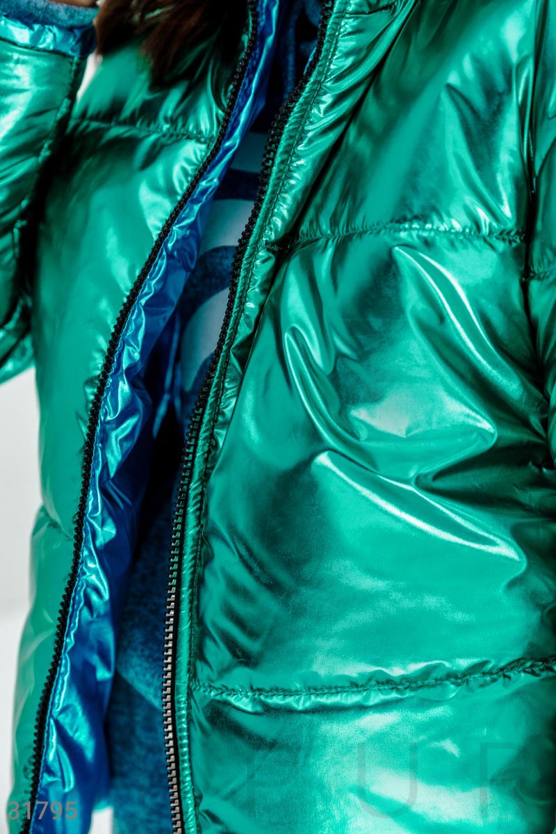Ребенок сам выбрал эту курточку и в восторге. А это главный показатель. На рост 133 см заказывали размер 146 см. Есть запас, можно подкатить рукавчики. Выглядит ярко и стильно. На голубой стороне есть кармашки, а на зелёной кармашков нет.
