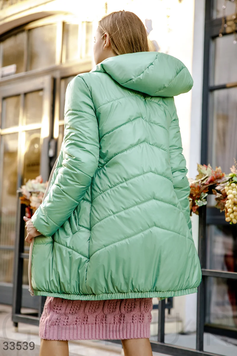 Куртка понравилась. Выглядит как на фото. Внизу резинка. комфортная. ОГ 100, бедра 108. курточка впритык, но возвращать не буду, лучше похудею))) Размер Л