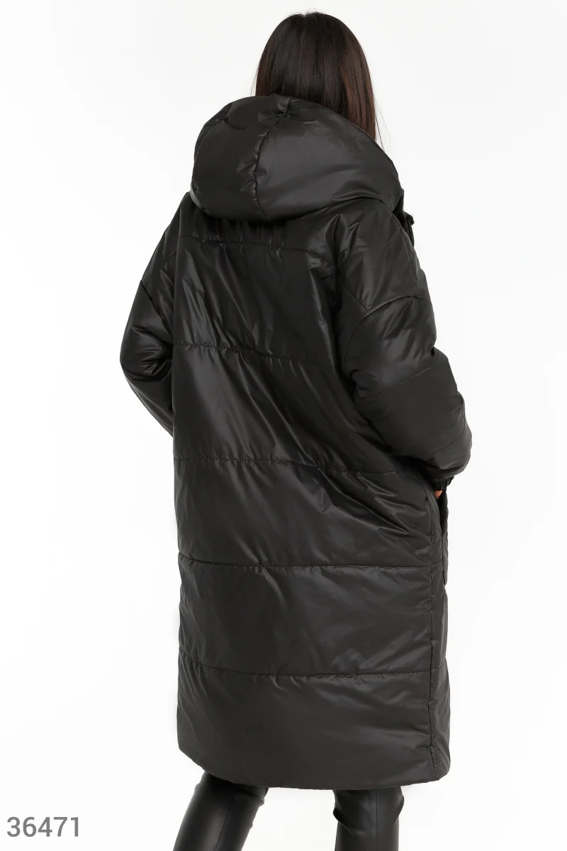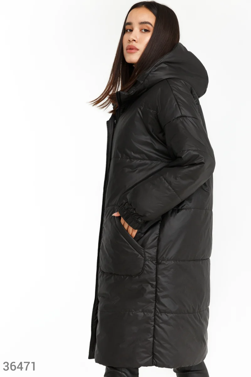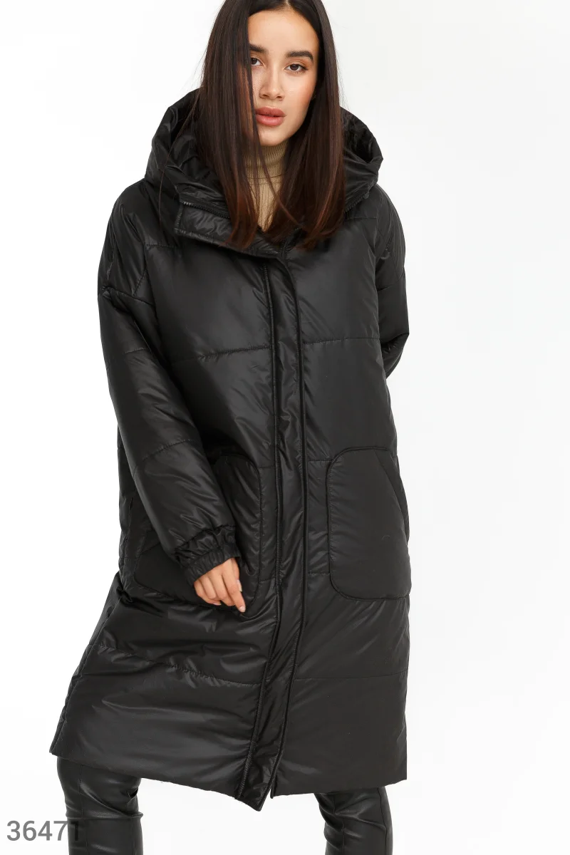 Прямая куртка черного цвета идеально подходит для изменчивой погоды межсезонья. Плотный основной материал защищает от осадков и ветра, а утеплитель поддерживает оптимальную температуру. Модель дополняют не отстегивающийся капюшон и вместительные накладные карманы. Эластичная манжета удобно фиксирует длинный рукав.