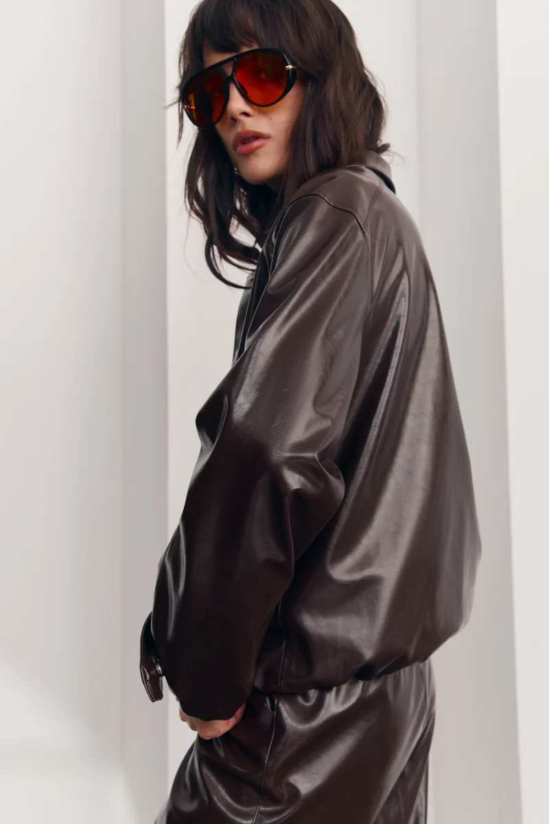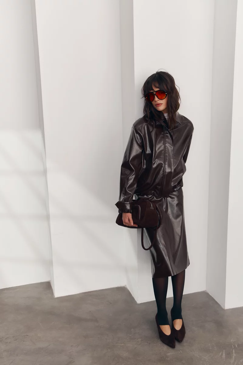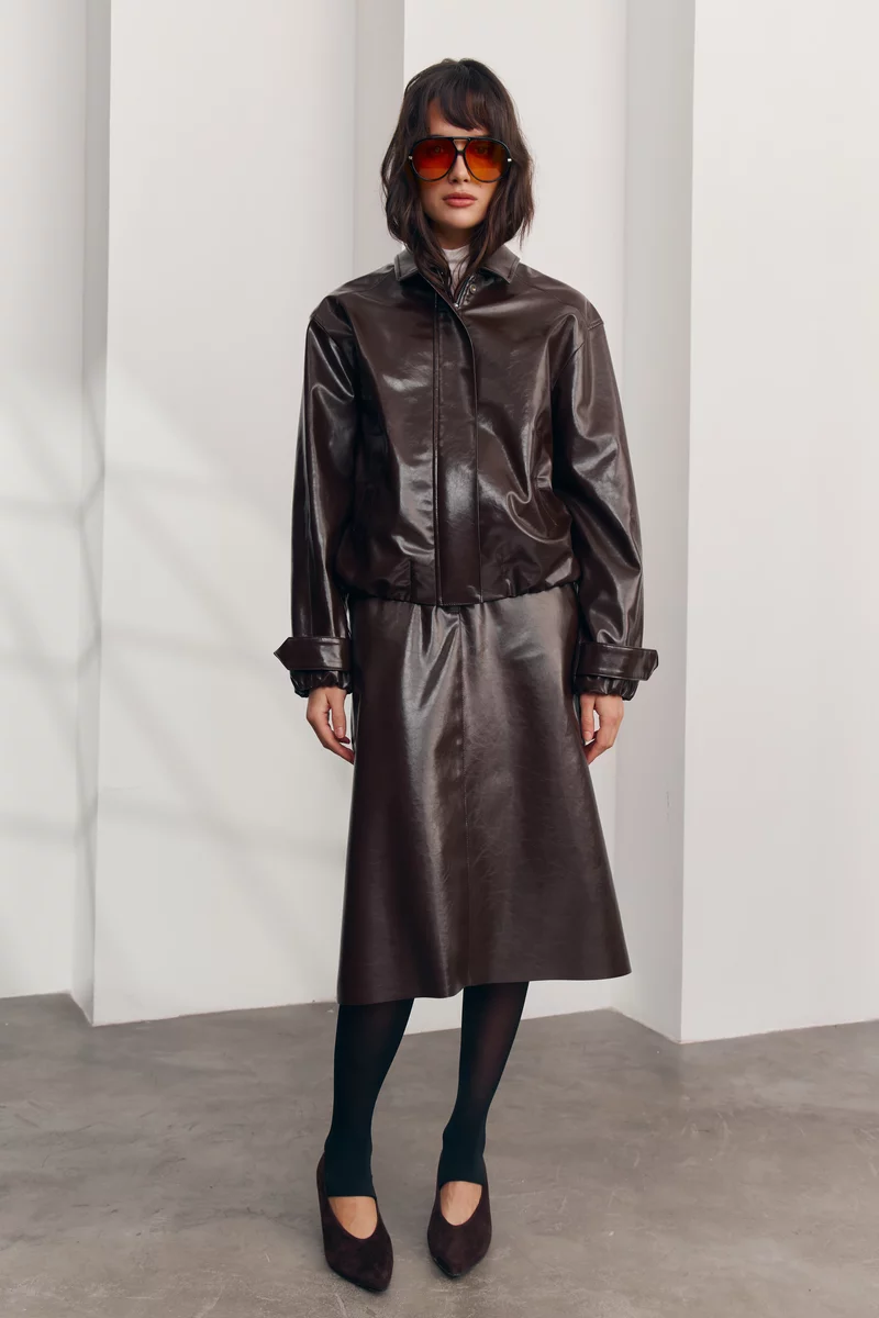 Куртка из экокожи в шоколадном оттенке