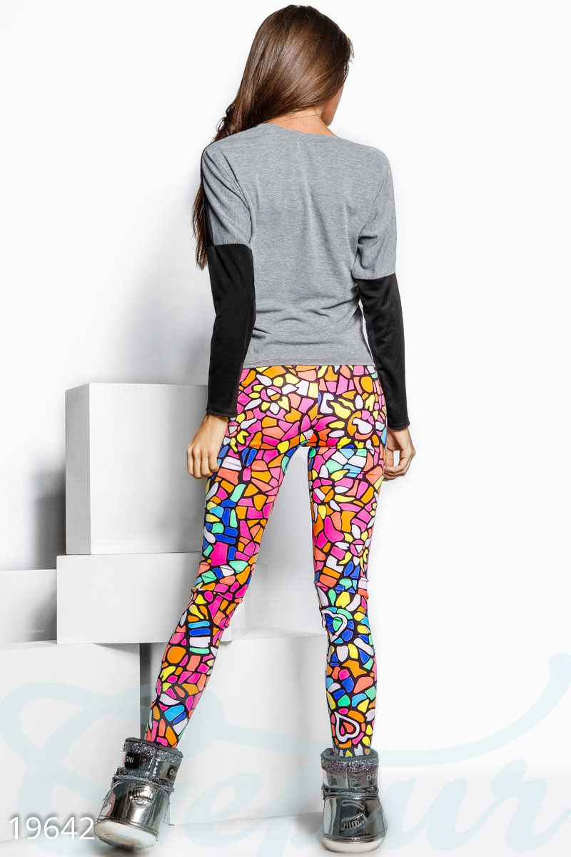 Леггинсы, которые отличаются ярким принтом. Благодаря эластичной ткани они имеют идеальную посадку, а с помощью пестрого паттерна привлекают внимание. Область талии подчеркивает втачной однотонный пояс, а стильно выделяться позволяет оригинальный дизайн.