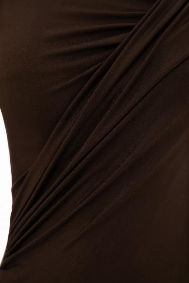 Лонгслив приталенного кроя из эластичного трикотажа. Модель стилизована драпировкой