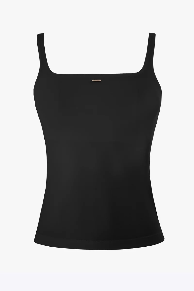 Базовый трикотажный топ на тонких бретелях. Эффектно выглядит как самостоятельно, так и как база под жакет оверсайз