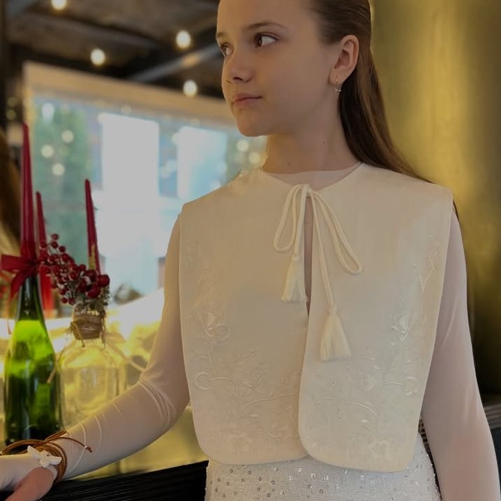 Манишка из натурального льна с вышивкой. Модель на завязке. Изделие можно применять для стилизации повседневных и праздничных образов
