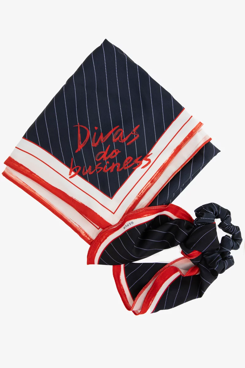 Набор из платка и резинки из искусственного шелка с принтом Divas do business. Размер платка - 70*70 см