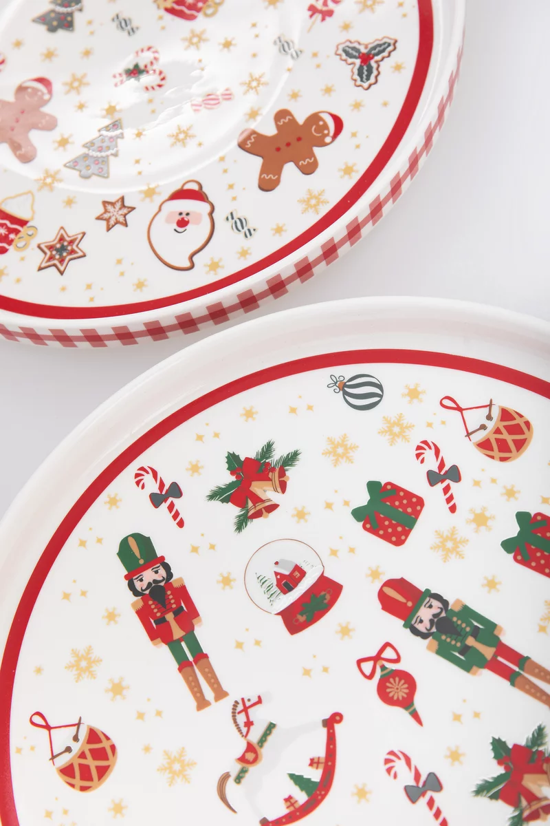 Молочный фарфоровый набор из 2х тарелок с рождественским декором