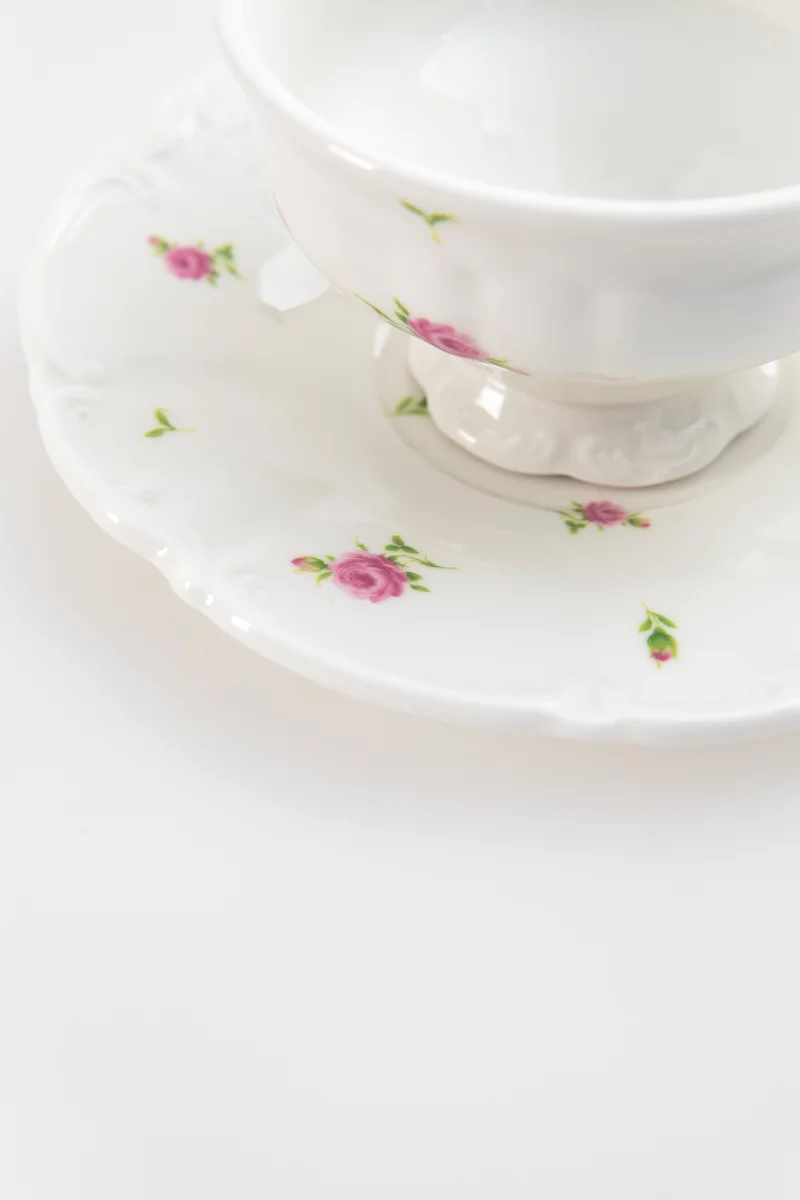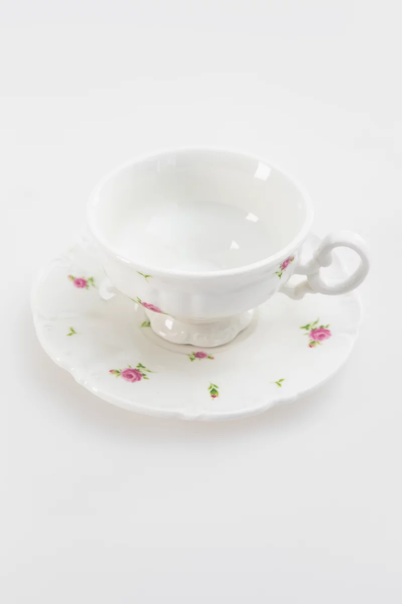 Фарфоровый набор из чашки и блюдца с цветочным декором добавит эстетику и завершенность сервированию