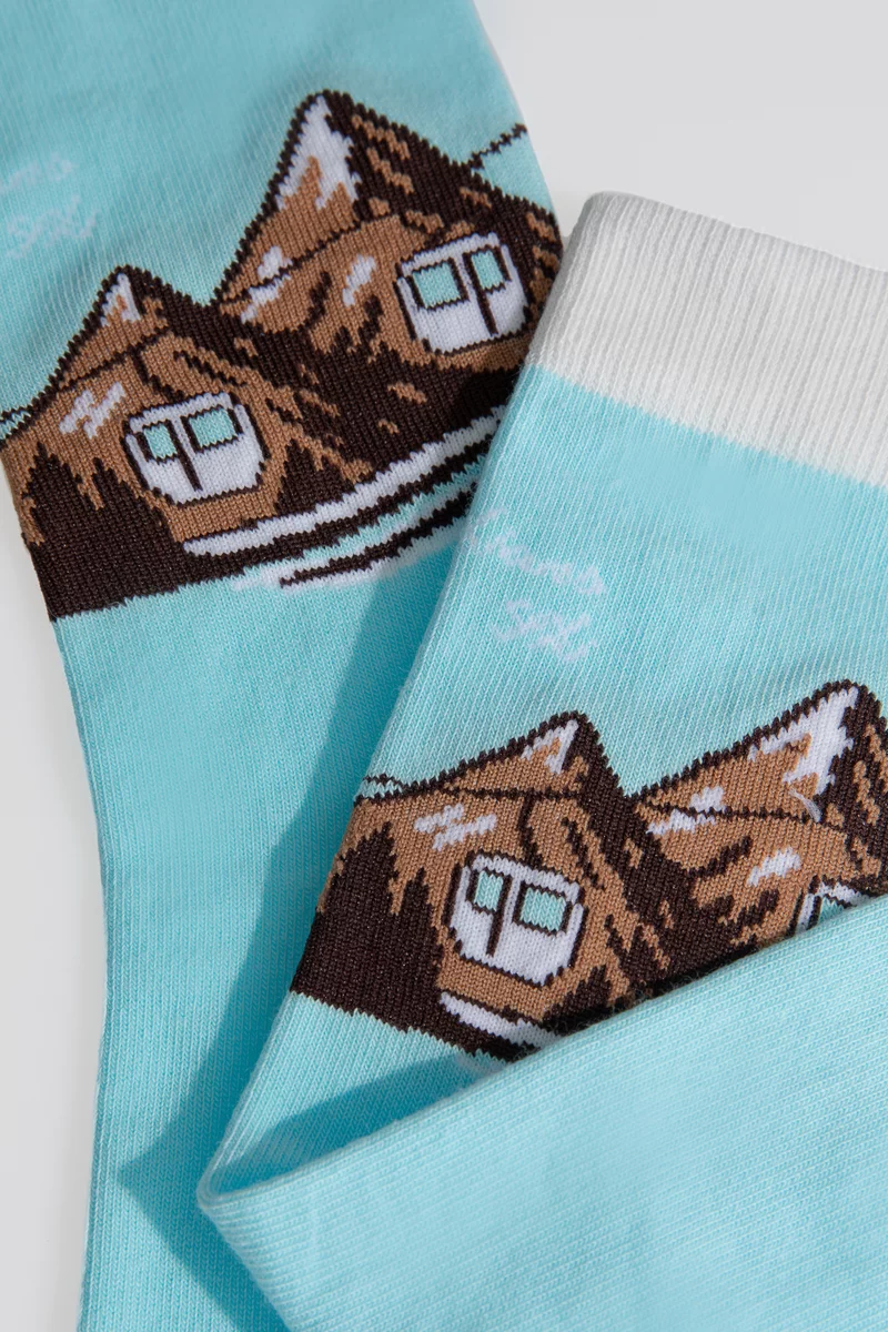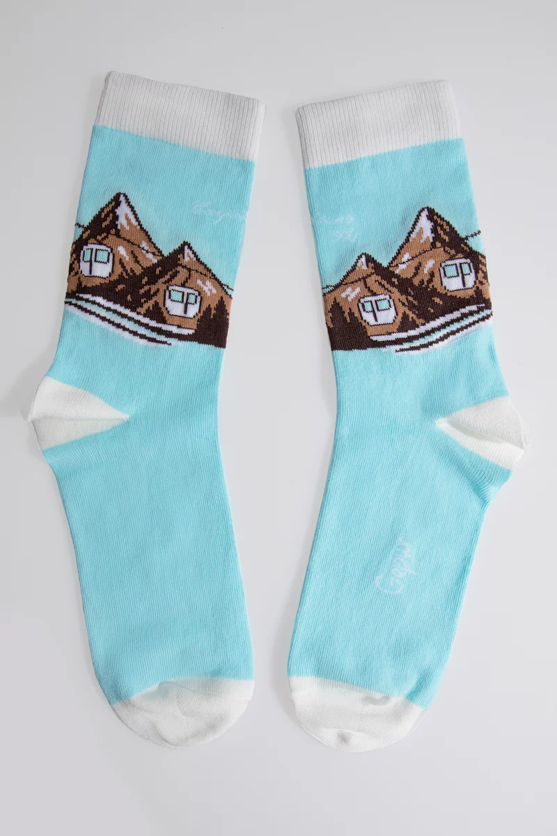 Голубые хлопчатобумажные носки с горнолыжным принтом