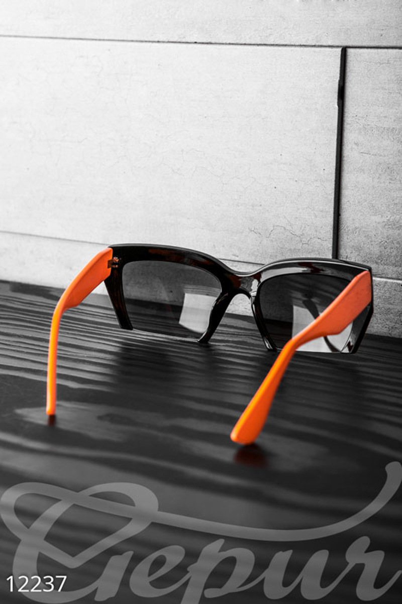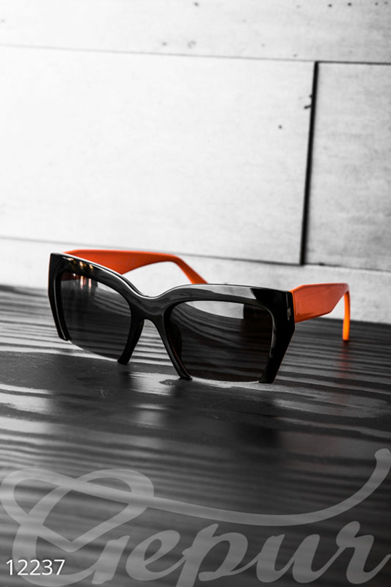 Черные очки кошечки с оранжевыми дужками