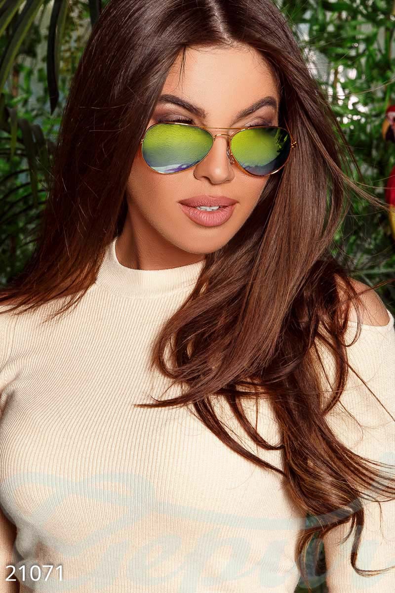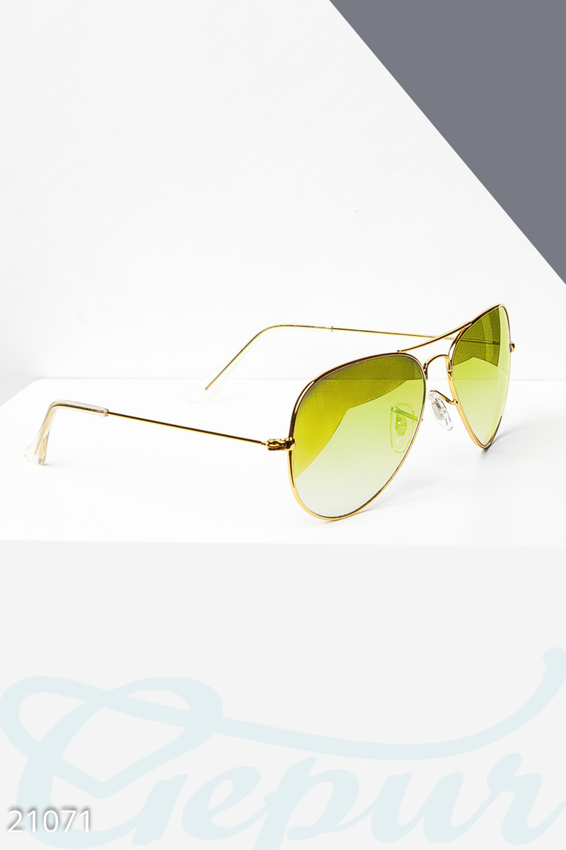 Солнцезащитные очки-авиаторы в металлической оправе, с прозрачными линзами. Ширина линзы: 6 см Общая ширина оправы: 13.5 см