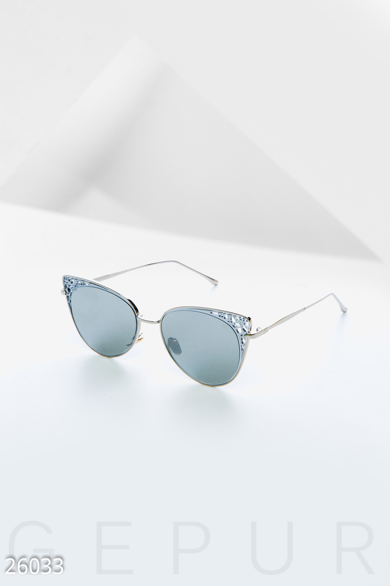 Стильные женские очки "кошачий глаз" с металлической оправой, украшенной перфорацией. Размер - 63*12*128. Уровень защиты - UV 400.
