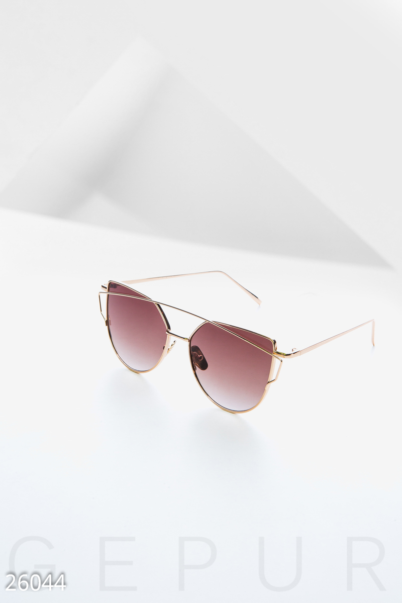 Оригинальные женские очки с тонкой металлической оправой и длинным мостиком, проходящим через всю оправу. Уровень защиты - UV 400.