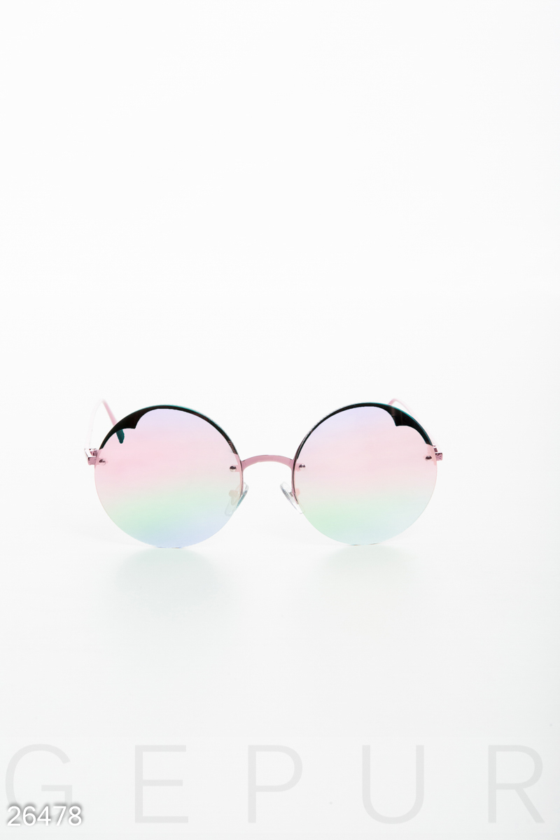 Актуальные женские очки с круглыми зеркальными линзами. Ширина оправы - 13 см Уровень защиты - UV 400