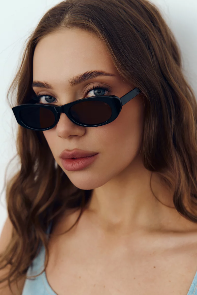 Черные солнцезащитные очки с поляризованными удлиненными линзами