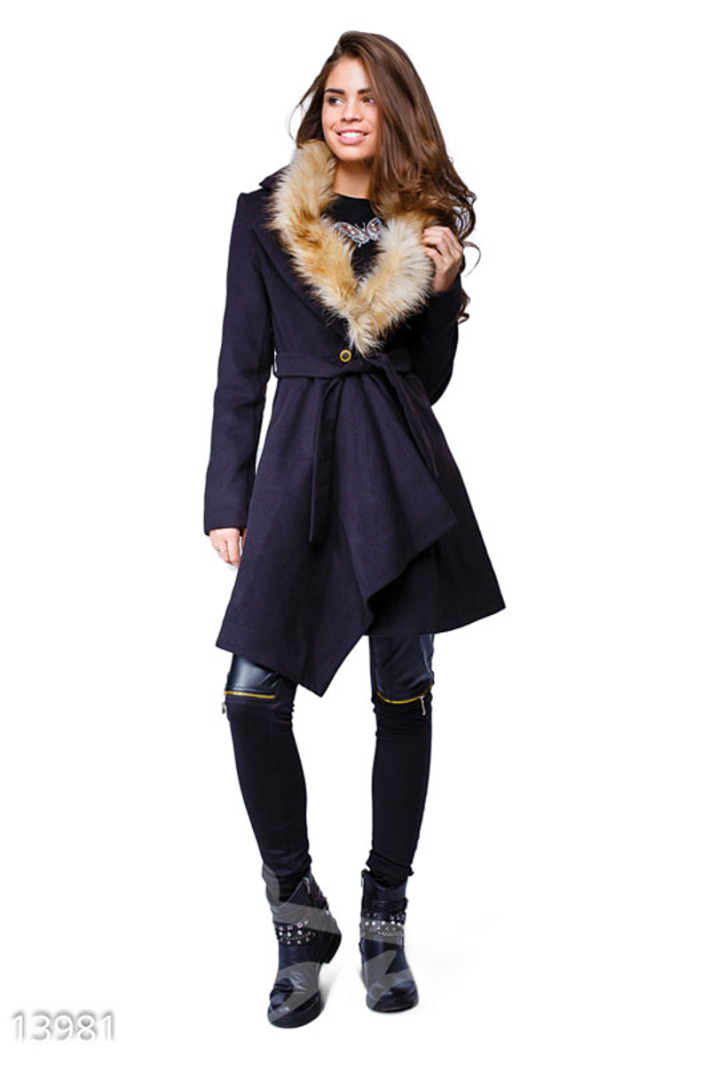 Ассиметричное пальто из кашемира - один из главных трендов осеннего сезона. Модель украшена стильным воротником из экомеха под лису, который при желании можно отстегнуть. Застегивается на одну крупную золотистую пуговку. В комплекте идет пояс, который отлично подчеркнет талию. Пальто на тонком подкладе. Особого внимания заслуживает необычный крой низа ассиметричной формы. Это стильное и очень теплое пальто порадует даже самых искушенных модниц.
