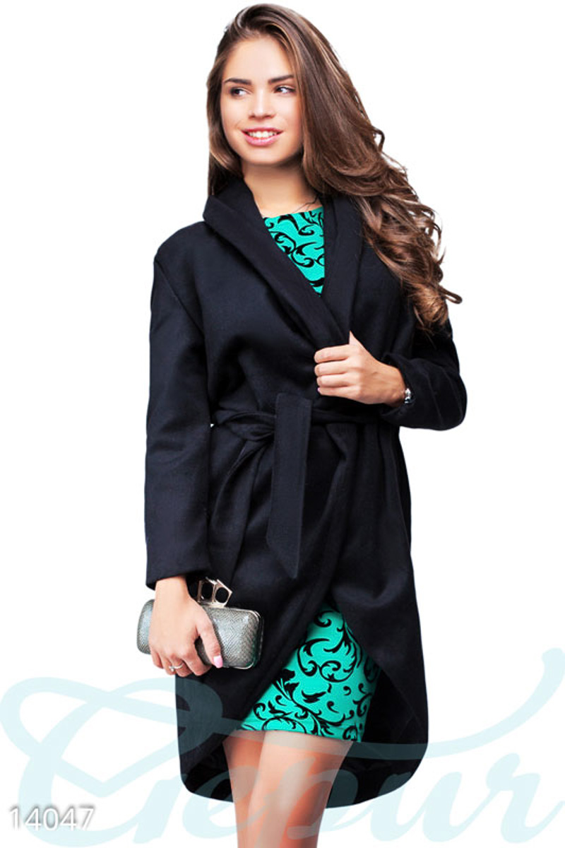 Укутаться в теплое кашемировое пальто так приятно в осеннюю непогоду! Эта модель способна защитить Вас от холода и ветра. Идет на запах без застежек и завязывается при помощи кашемирового пояса. Пальто с тонким подкладом и широким воротником, который можно поднять или отвернуть. Изюминка изделия - ассиметричные края, оформленные полукругом. Материал: экокашемир Длина: 101 см Цвет: черный