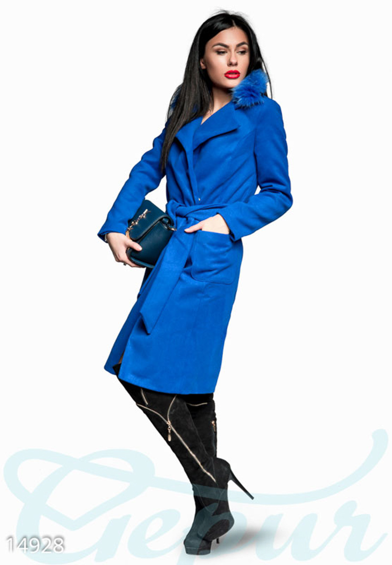 Демисезонное кашемировое пальто на подкладе. В комплекте идет широкий пояс в тон изделия, который красиво подчеркивает талию и создает более женственный силуэт. Модель застегивается на одну кнопку, которую не видно с наружной стороны. По бокам расположены карманы. На спинке миниатюрная нашивка "fashion". Воротник украшает вставка из эко-меха, которую можно отстегнуть при помощи пуговиц. Советуем сочетать такую модель с платьями, юбками и высокими сапогами.