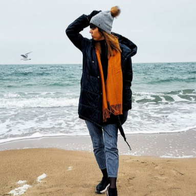 Куртка шикарная, если хотите чтоб смотрелась как на фото, то лучше брать на размер больше, брала L, в размер, но хотелось посвободнее