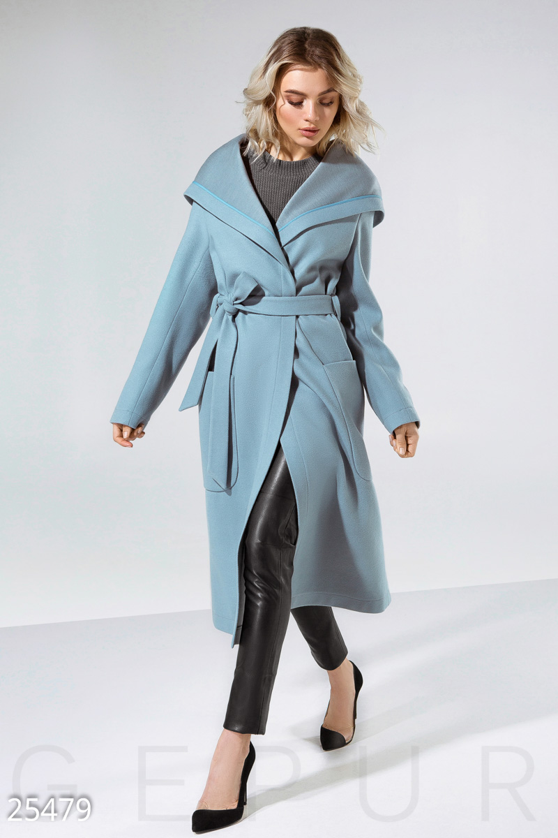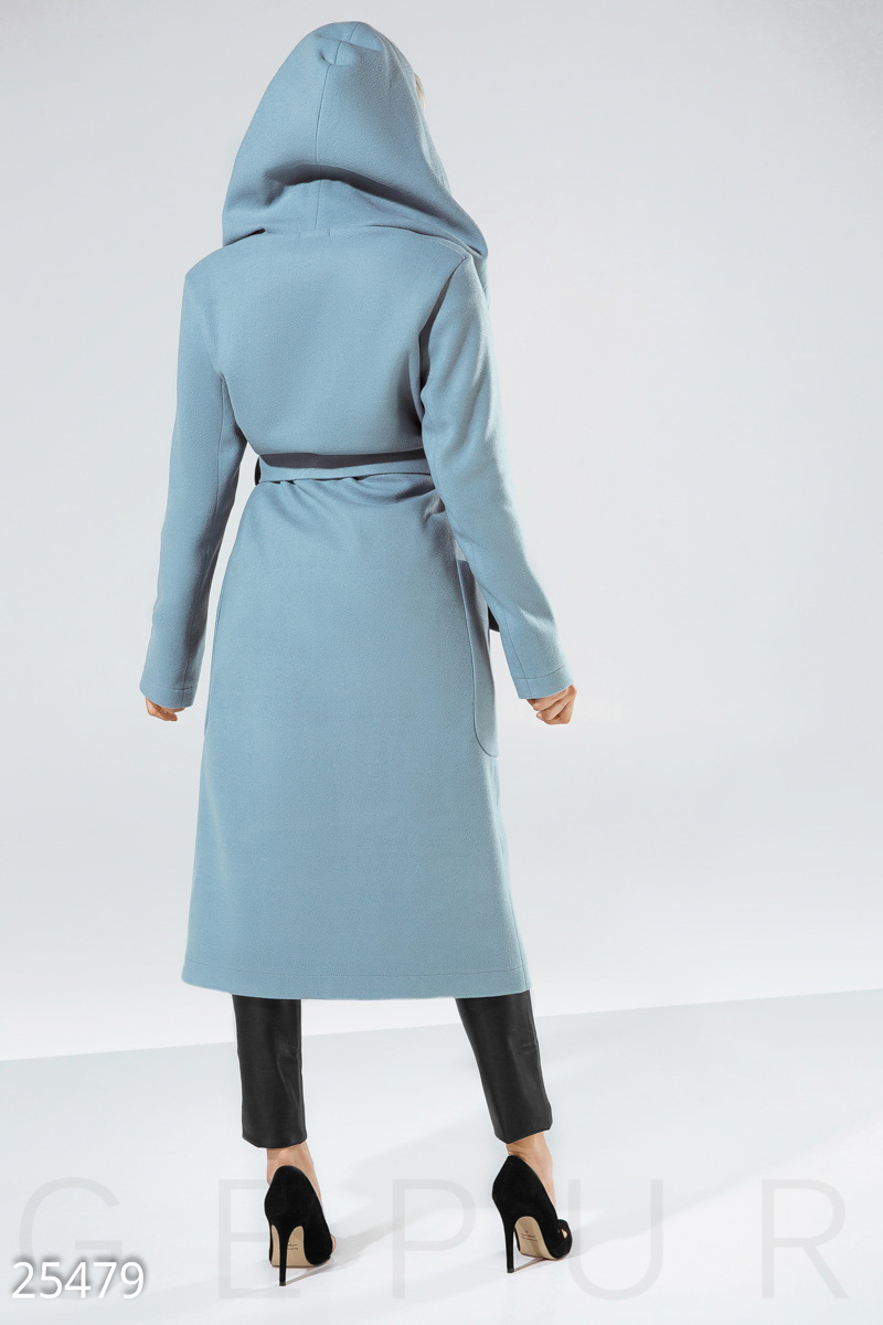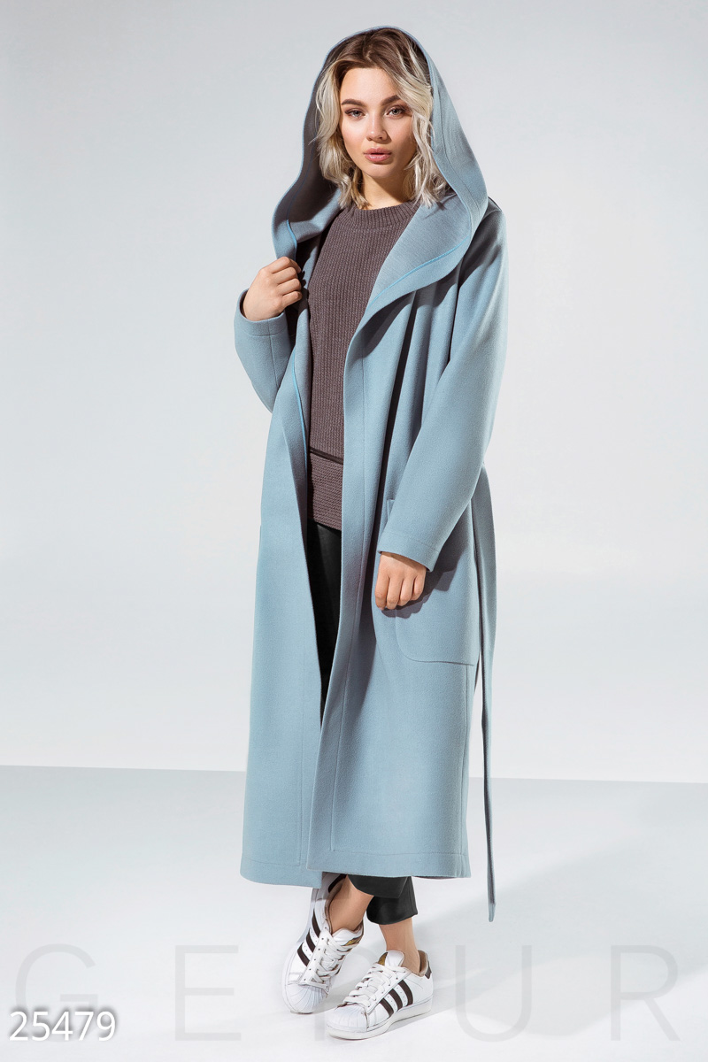 Оригинальное женское пальто (без подклада), выполненное из материала премиум класса (водоотталкивающий эффект): с удобным капюшоном, двумя большими накладными карманами и съемным поясом в тон.