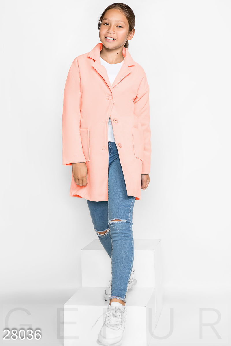 Демисезонное пальто прямого кроя с двумя накладными карманами, выполненное из эко-кашемира.
