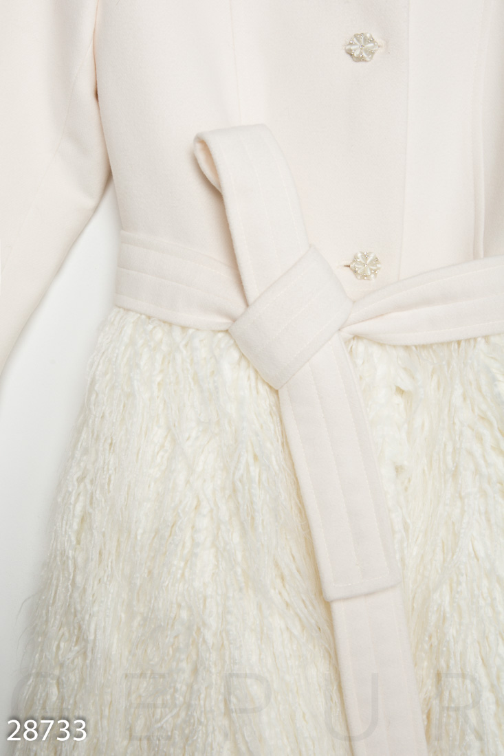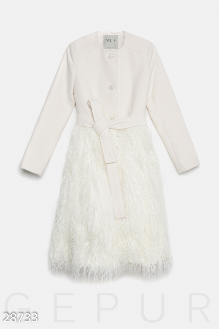 Изящное пальто от дизайнеров Gepur, выполненное из пальтовой ткани premium класса: оригинальный крой, повторяющий женский силуэт, слегка завышенная линия талии, пришивной подол из эко-меха и съемный пояс в тон. Лицо коллекции: Vikel Виктория - популярный Instagram-блоггер и it-girl. Обращаем внимание, что фурнитура может отличаться.