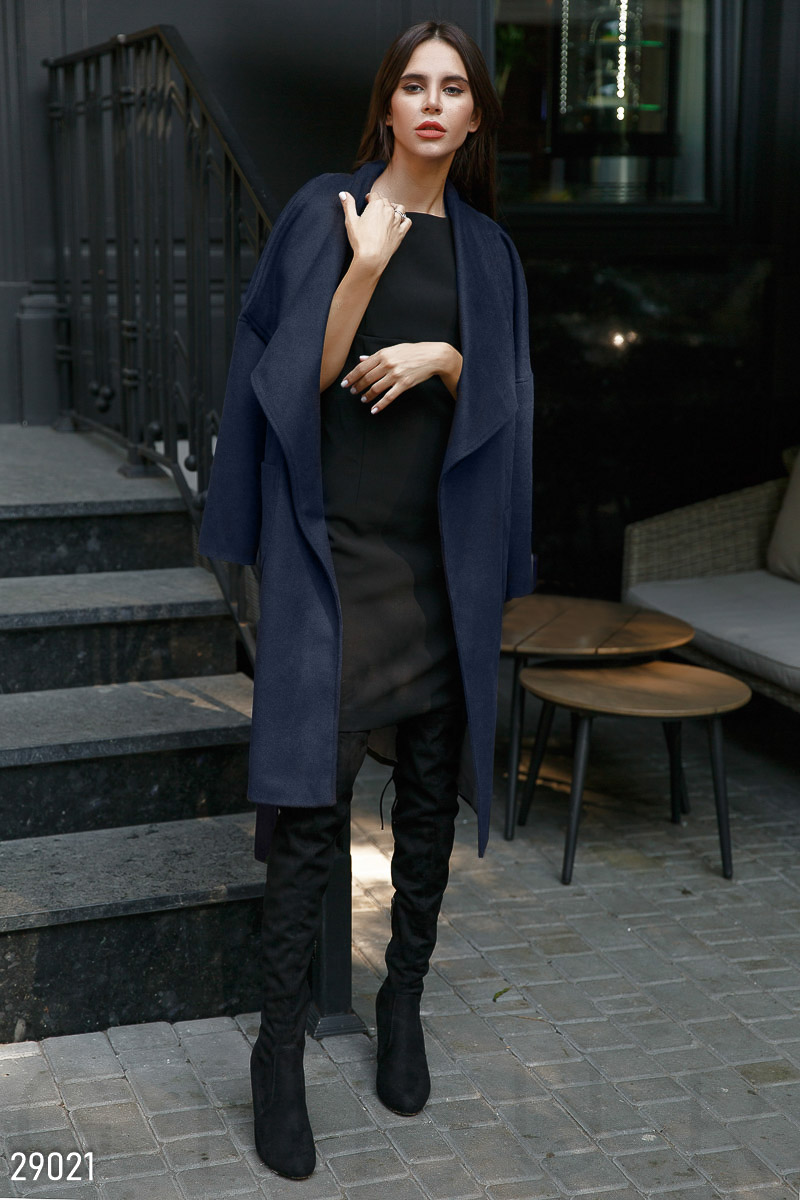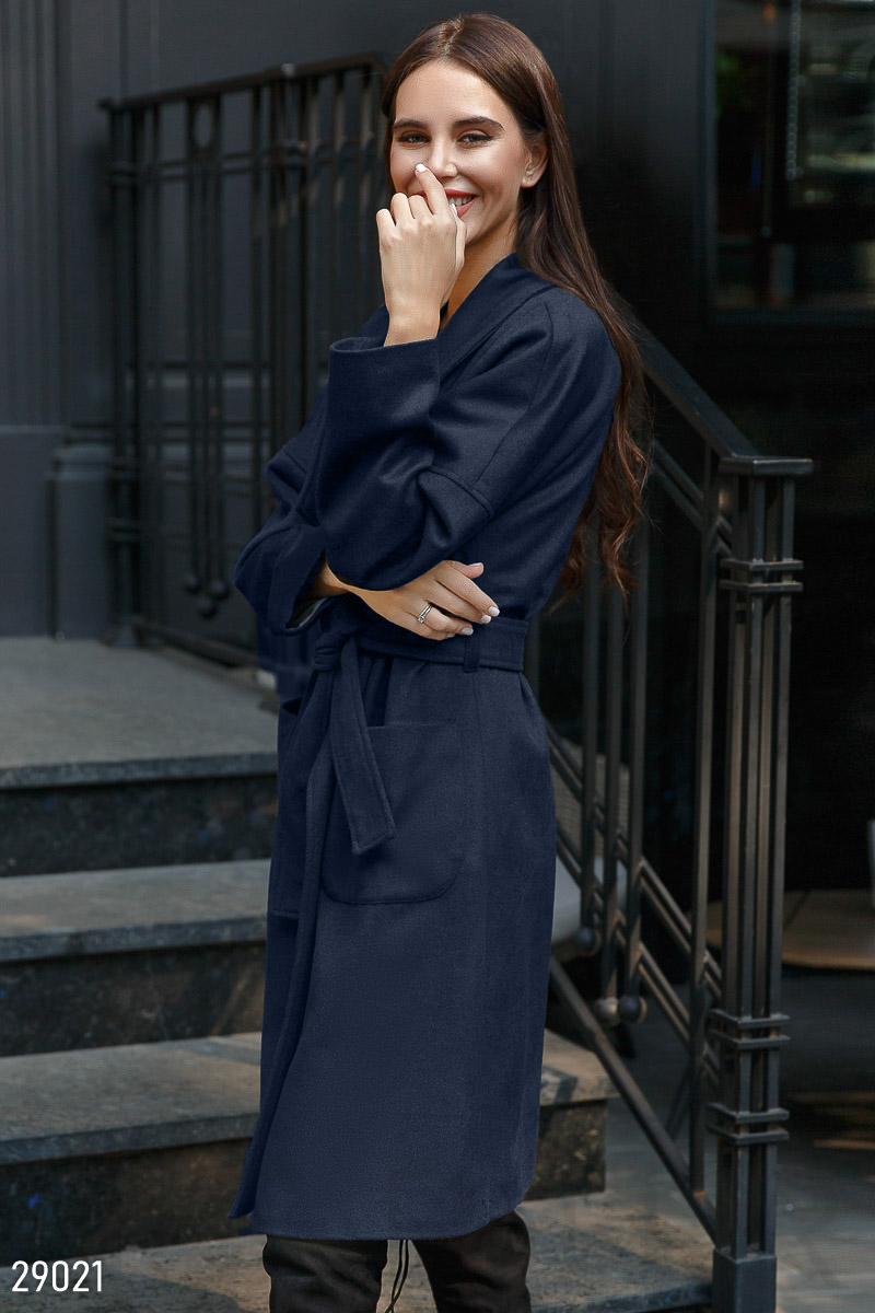 Шерстяное пальто от дизайнеров Gepur, выполненное из пальтовой ткани premium класса: объемные лацканы, заниженная линия плеча, два накладных кармана по бокам и съемный пояс в петлях-шлевках.