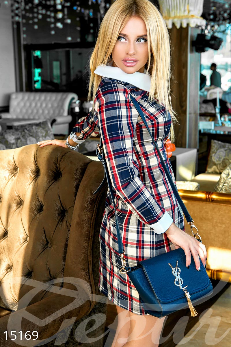Платье в клетку прилегающего кроя. Лаконичная и очень стильная модель в модный клетчатый принт. Главная изюминка платья - контрастные манжеты и воротник. На спинке застегивается на потайную молнию. Создавай новый образ каждый день с этим платьем. Оно будет уместно как в рабочей, так и в расслабленной обстановке. Внимание! Цвет может отличатся