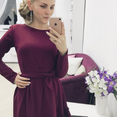Платье сдержанное, но в то же время очень женственное за счёт акцента на талии и рюшей на подоле. Цвет в реале на полтона темнее чем на фото, благородная марсала. Пошито из приятной к телу эластичной ткани, не просвечивающей и не мнущейся. Платье...Детальнее
